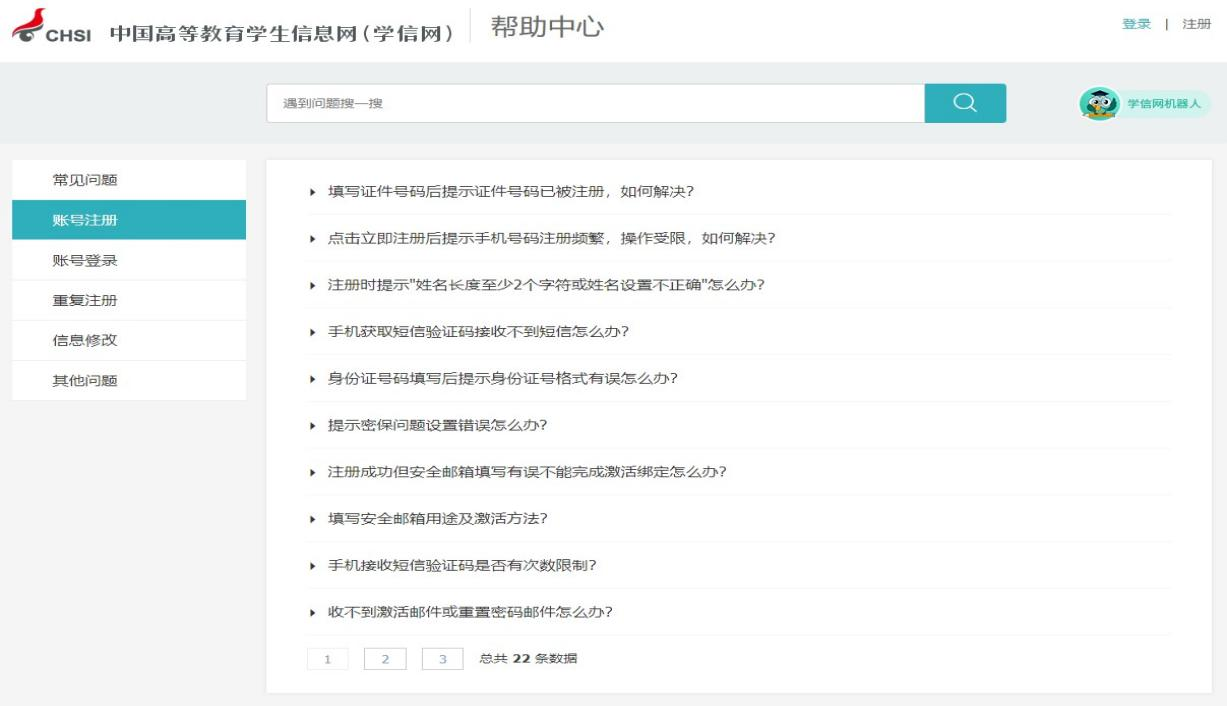 3、每个学生都要求注册并核查,若提示手机号码或身份证号码被他人注册导致无法注册或无法登录学信网等问题,学校没有权限解 决。请按照学信网平台帮助中心页面进行解决或联系学信网客服。
