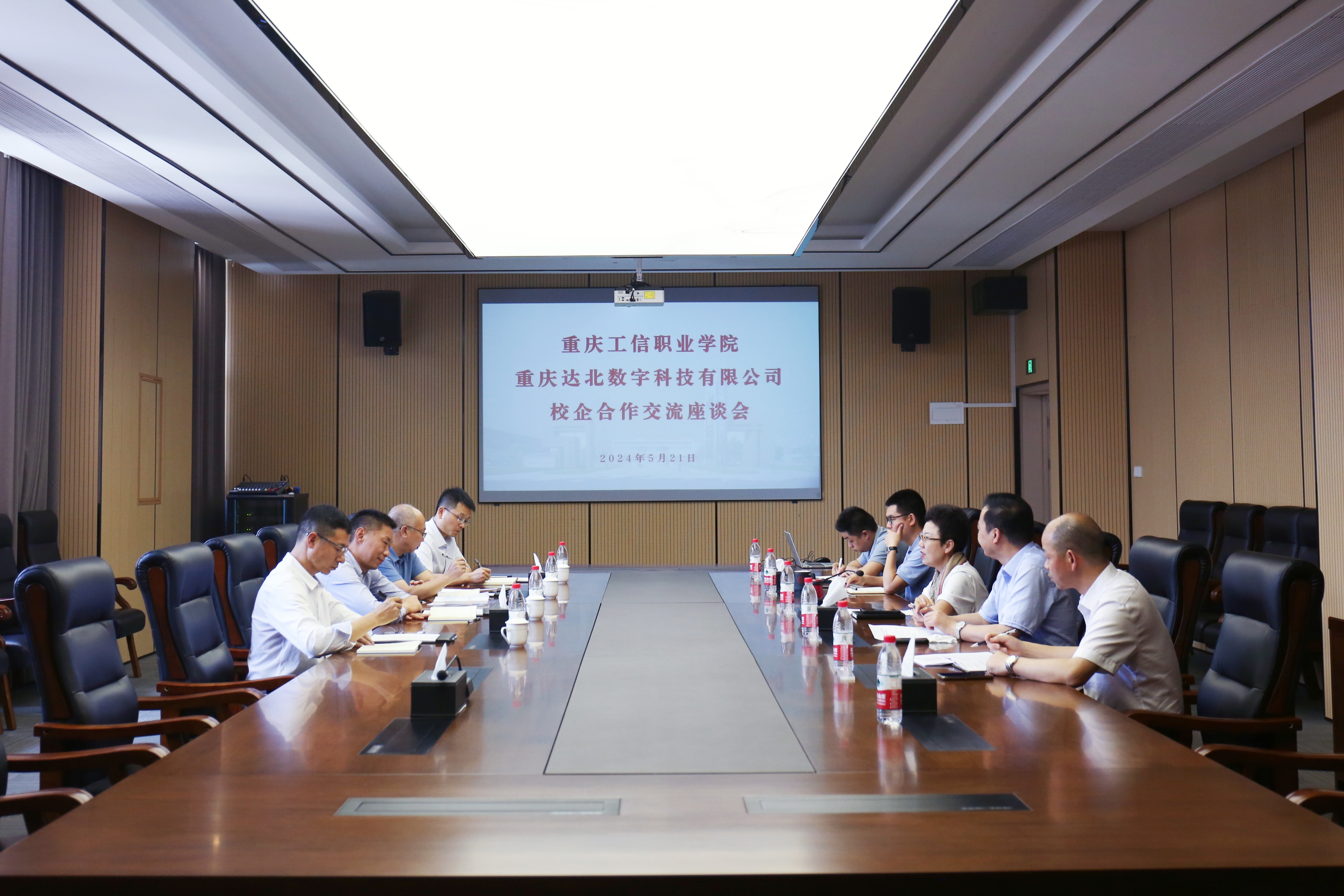 5月21日,重庆达北数字科技有限公司董事长凌培田、总经理徐林一行莅临学校进行校企合作交流座谈。党委副书记、院长杜宏伟接待了来访嘉宾,教务处、合作交流中心、智能制造学院等部门负责人参加交流座谈会,会议由副院长柴彬堂主持。