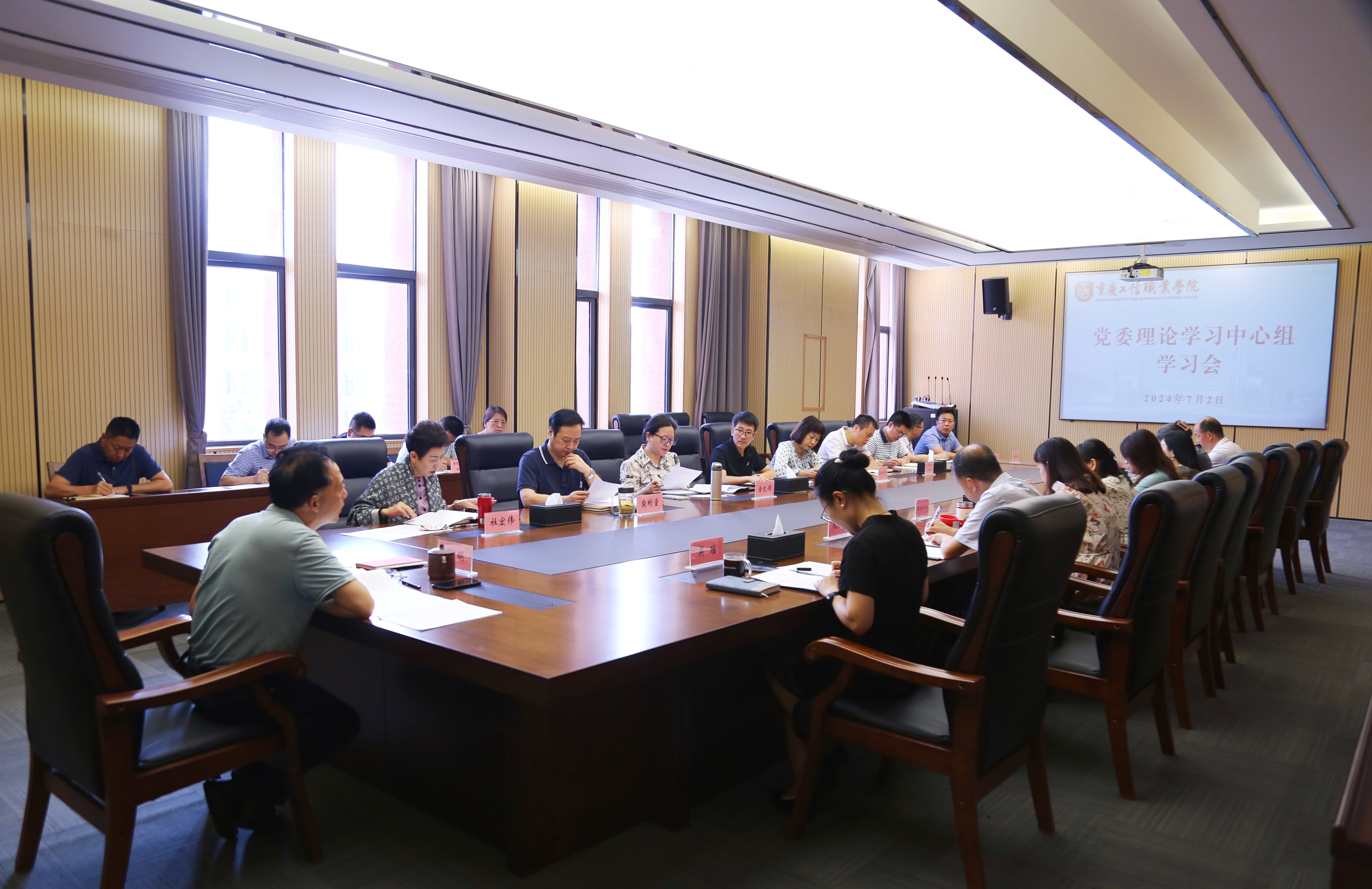 2024年7月2日,重庆工信职业学院在长寿校区立德楼1318会议室召开了2024年第6次党委理论学习中心组(扩大)学习会。会议由党委书记高明主持,全体党委委员及二级学院、部门负责人参加了会议。会议旨在深入学习贯彻习近平总书记系列重要讲话精神,提升党员干部的政治觉悟和纪律意识,进一步推动学校高质量发展。