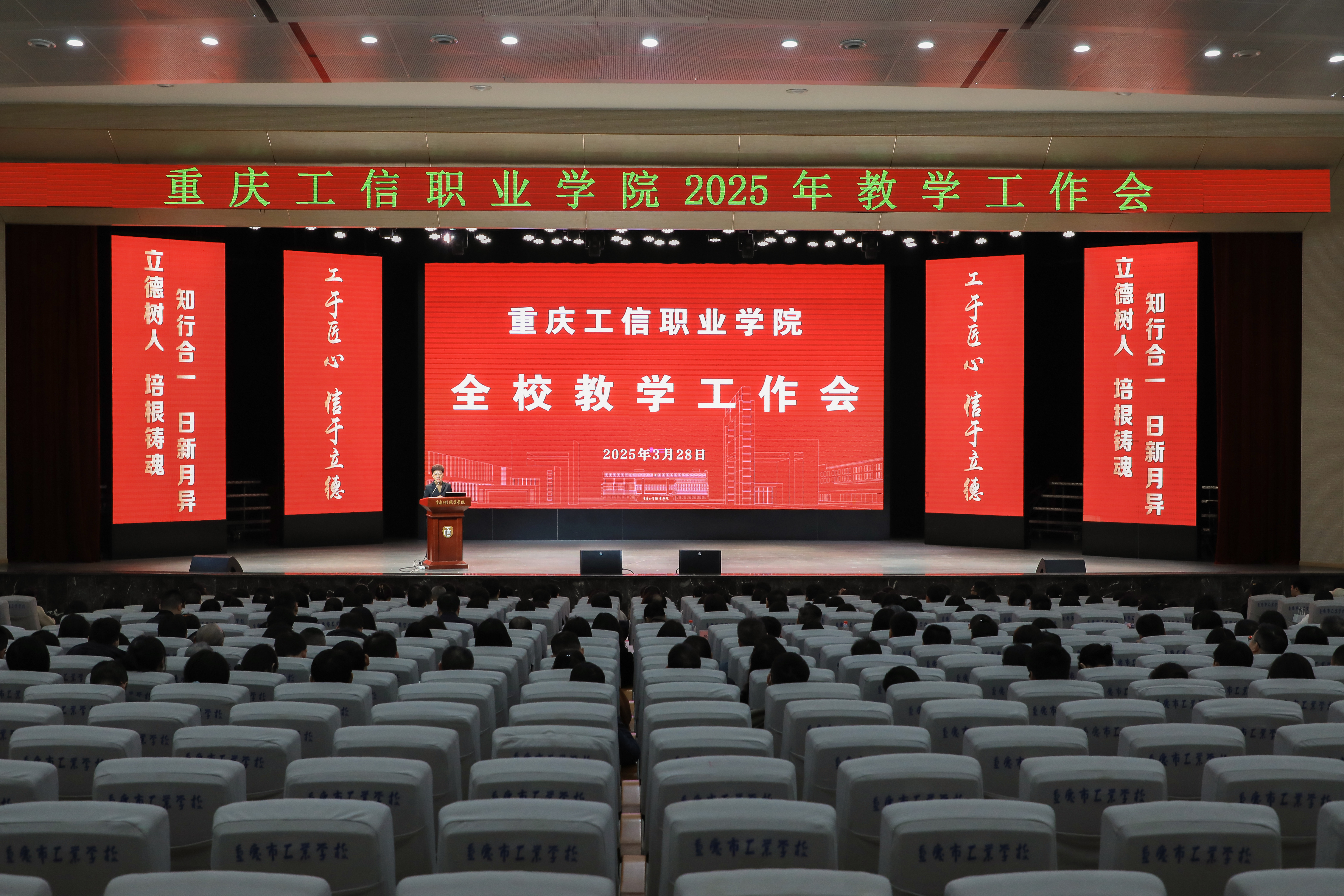 为全面落实立德树人根本任务,深化教育教学改革,提升人才培养质量,重庆工信职业学院于2025年3月28日下午在渝中校区大礼堂召开教学工作大会。本次大会由党委委员、副院长柴彬堂主持,学校党委副书记、院长杜宏伟,党委副书记吴瑶出席会议,各教学部门负责人、全体专兼职教师参加了会议。
