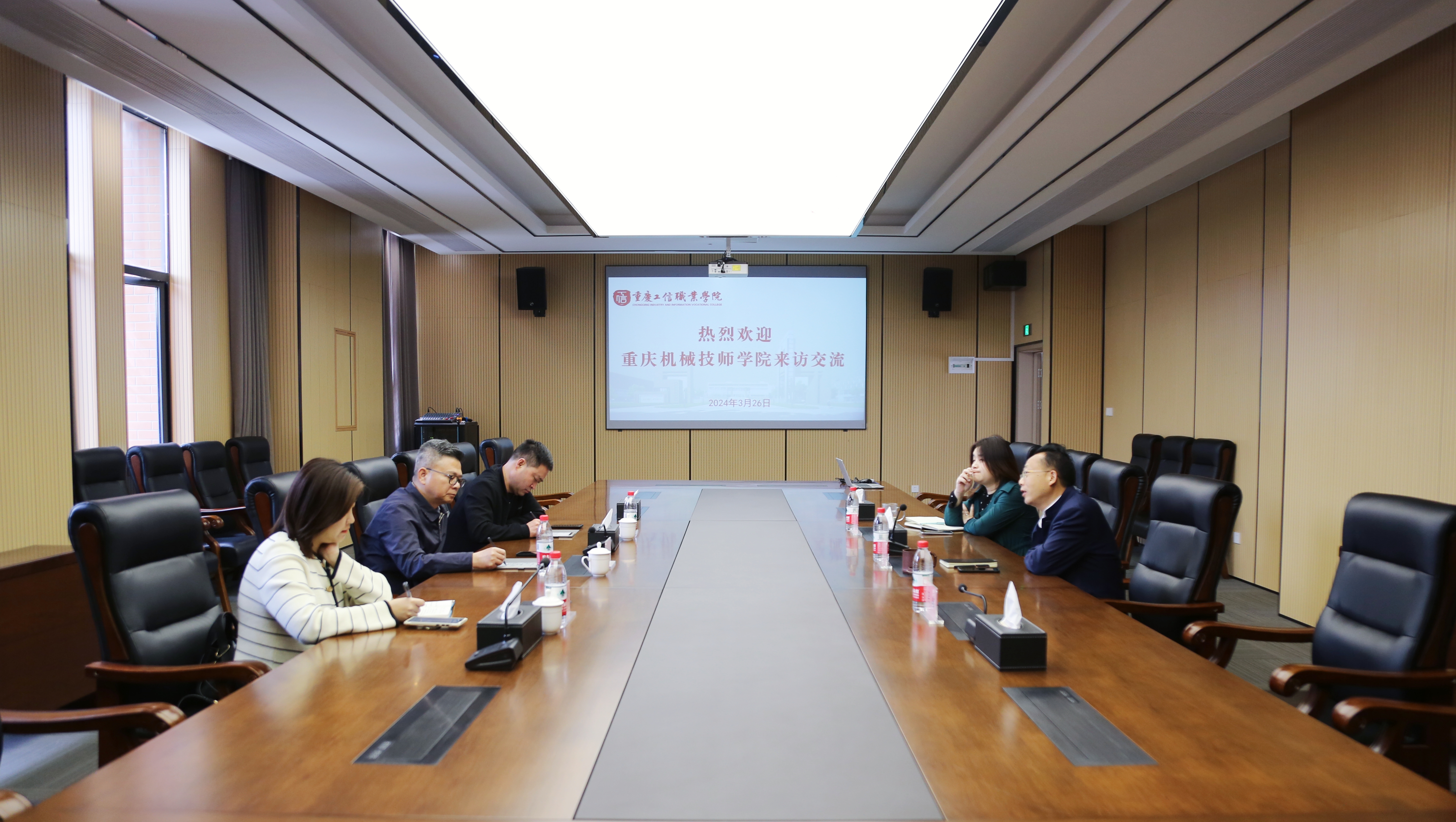 3月26日,重庆市机械技师学院党委书记朱庆一行来我校调研交流,党委书记高明、党委教师工作部(人事处)负责人参加了座谈会。