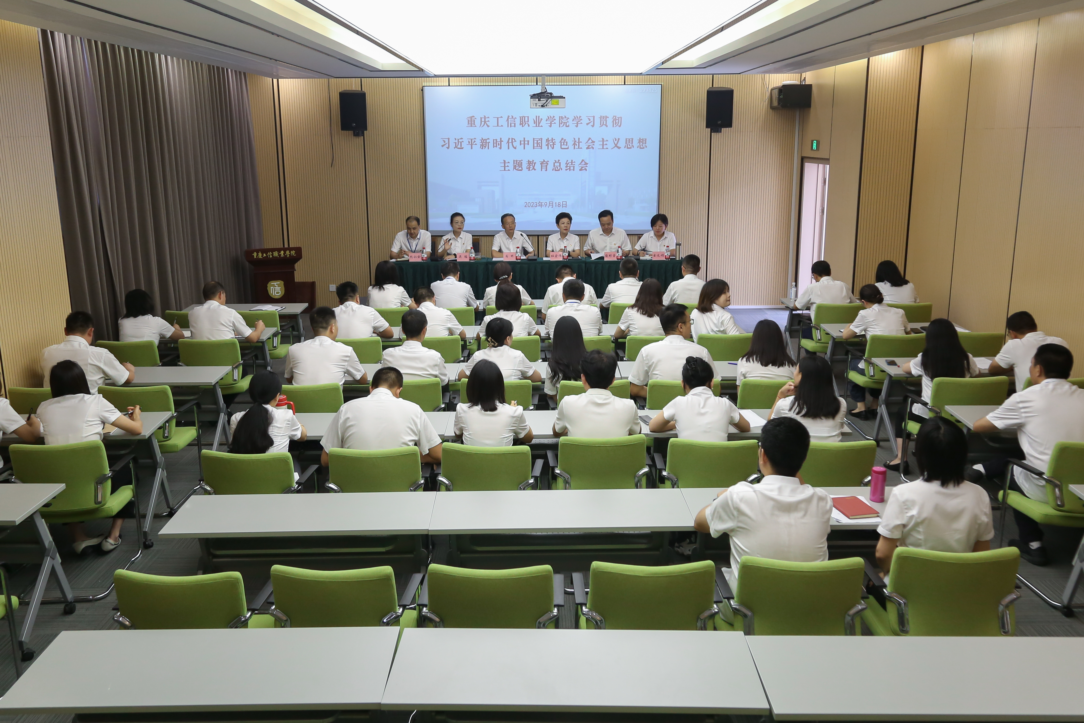 9月18日,重庆工信职业学院学习贯彻习近平新时代中国特色社会主义思想主题教育总结会在立德楼1319会议室召开。会议由党委专职副书记吴瑶主持,全体校领导、党员干部参加会议。