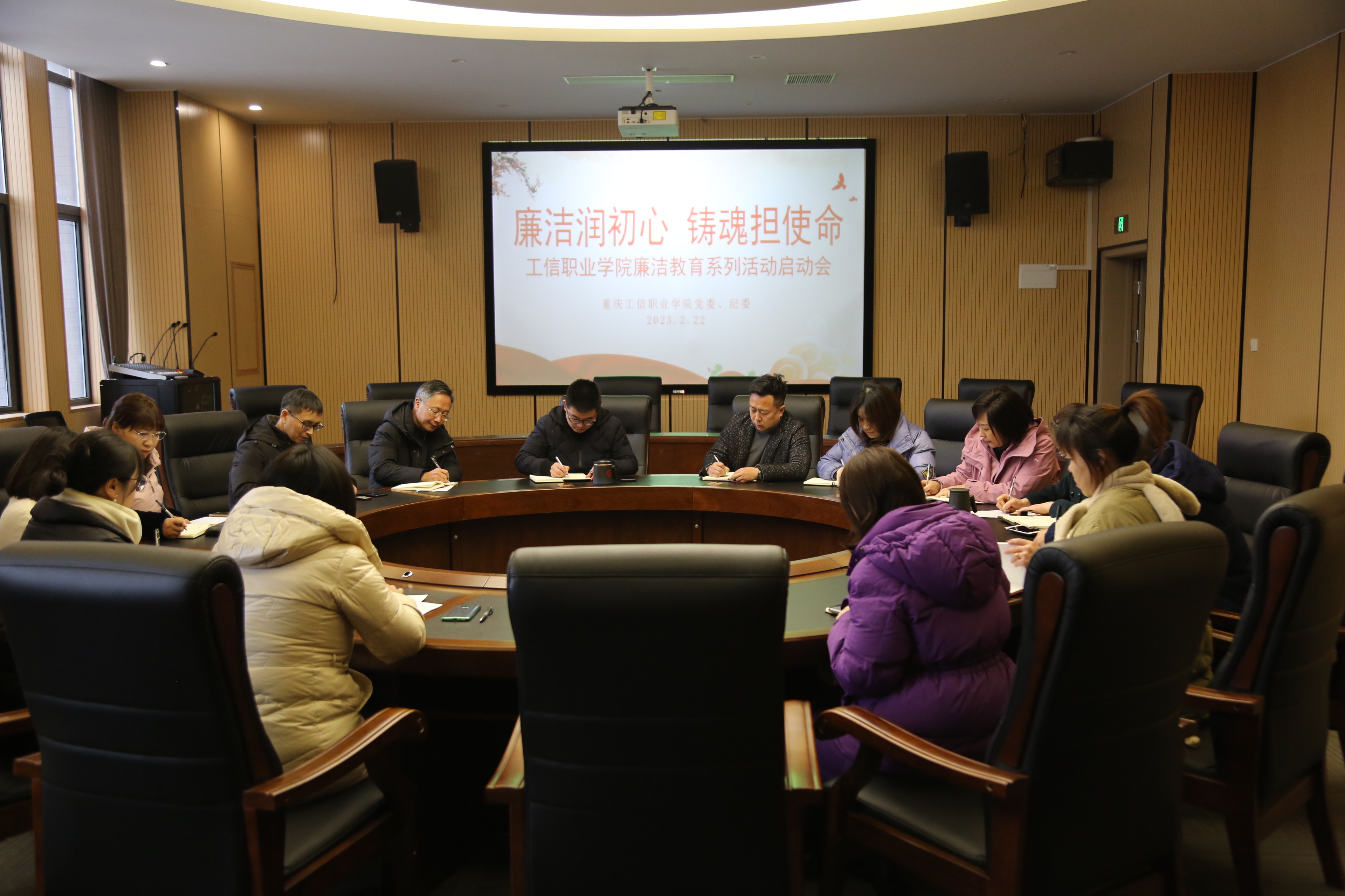 会上,纪委书记金文娟围绕活动背景、活动主题、参赛项目等方面详细解读了《中共重庆工信职业学院纪律检查委员会关于开展“廉洁润初心 铸魂担使命”廉洁教育活动的通知》内容。并提出三点要求:一要提高站位,高度重视,要将此次活动作为学习贯彻党的二十大精神、落实中央决策部署的重要举措,加强组织领导,充分调动全体师生的参与积极性,把加强大学生廉洁教育工作作为思想政治教育和课堂教育的重要内容,认真将活动的各项任务落到实处;二是组织规范,注重实效,各分管领导要加强对此次活动的检查指导,各部门、各二级学院负责人要严把政治关、质量关和公正关,坚持原创,坚持正确的舆论导向和价值取向;三是强化宣传,营造浓厚氛围,要坚持双向互动、文化联动、共同提升,全面加强校园廉洁文化建设,推动廉洁文化建设实起来、强起来,不断营造风清气正的良好育人政治生态。
