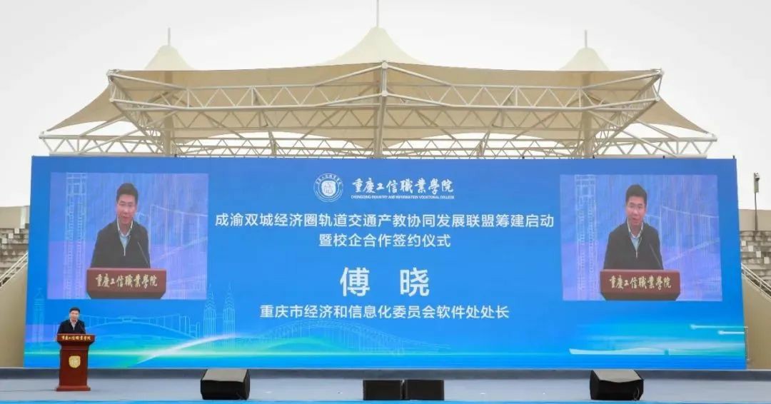 重庆市经济信息委软件处处长傅晓指出,产业发展需要高素质技术技能人才支撑。市经济信息委始终坚持把职业教育发展摆在突出位置,相关职能处室将全力支持重庆工信职业学院深化政校行企全面合作,支持成渝轨道交通产教协同发展联盟筹建。希望众人携手,众智汇聚,在服务国家重大战略部署和区域经济社会高质量发展方面发挥积极作用。