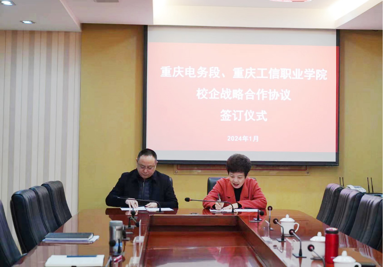 1月26日,学校与中国铁路成都局集团有限公司重庆电务段的在重庆电务段机关签署校企战略合作协议,重庆电务段段长余涛,学校党委副书记、院长杜宏伟分别代表校企双方在合作协议上签字。