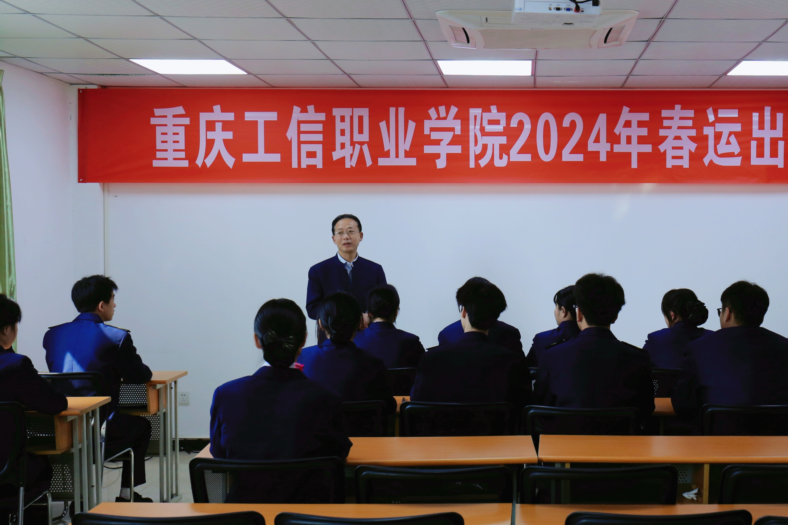 在校三组的出乘会上,高明对同学们前期出色的值乘工作给予了高度评价,他表示春运已进入关键的收官阶段,大家要团结一心、凝心聚力,为春运大考交出满意的答卷。他特别提出三点要求:一是全体师生必须严格执行自我安全防护措施,确保人身安全;二是要不断提升服务质量,展现学校师生的专业素养;三是要珍惜此次铁路春运服务的宝贵机会,遵章守纪,在服务中锻炼自我,实现个人价值。