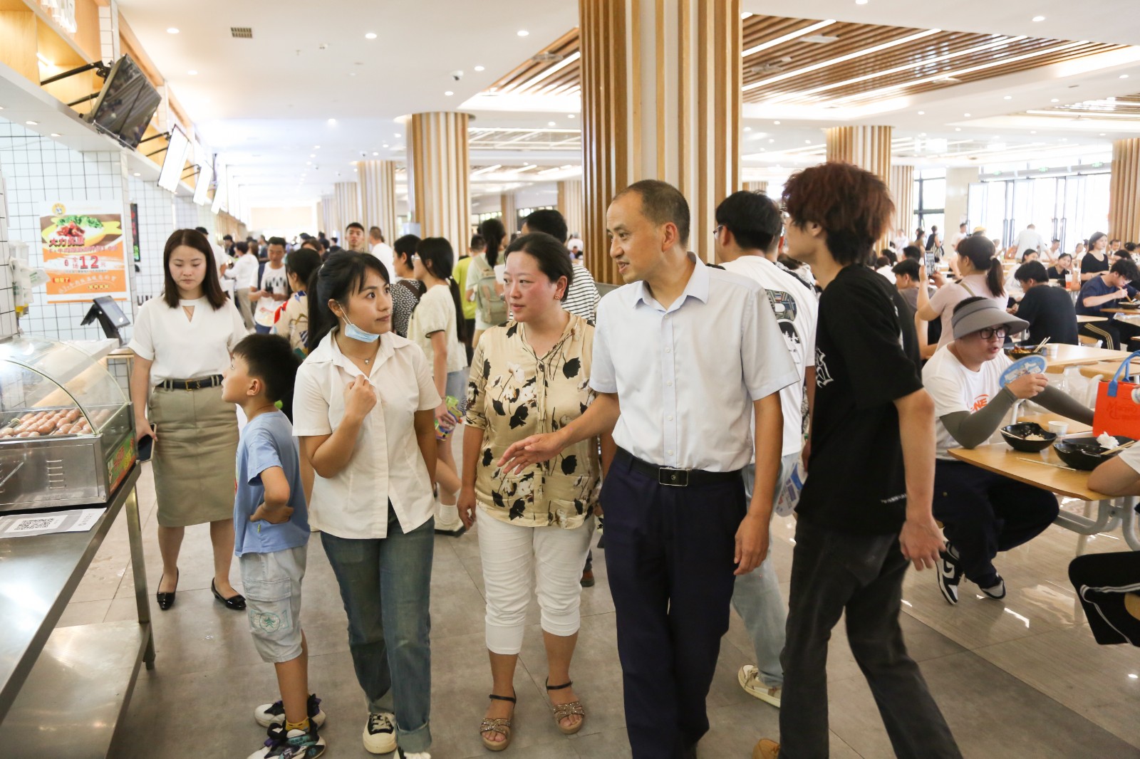 检查组一行深入迎新报到点、食堂、超市等场所,先后查看了新生报到、食品安全、校园安保及应急处置预案等工作。在检查中对迎新期间校园交通安全,高温防暑降温措施落实进行了强调;与食堂、小卖部的工作人员进行了详细沟通,对食品安全、明码标价、服务态度提出了纪律要求。