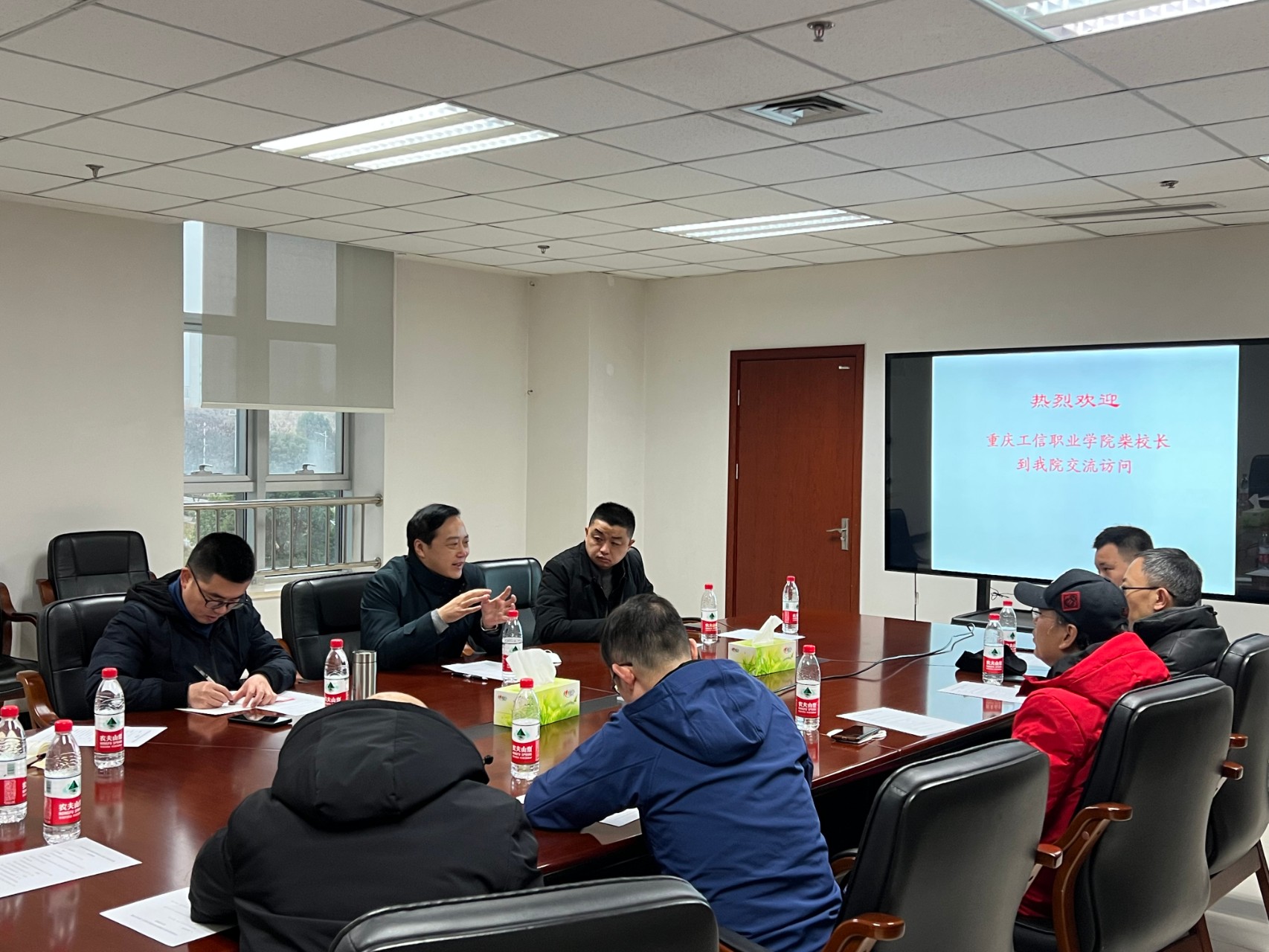 在调研过程中,郑彬主任介绍了中科院重庆绿色智能技术研究院创办历程及科研成果,黄冠雄总经理介绍了在数字孪生、乡村振兴等已完成或即将开展的项目做了详细的介绍;随后,柴院长对重庆工信职业学院做了简要的介绍,并表示学院非常有意愿与处于科技前沿科研院所、科技企业合作,从而带动学院专业建设,把专业做出特色做出亮点;最后,双方就如何将高新技术向职教转化,专业共建、推动项目进展、夯实项目落地等问题进行了探讨。