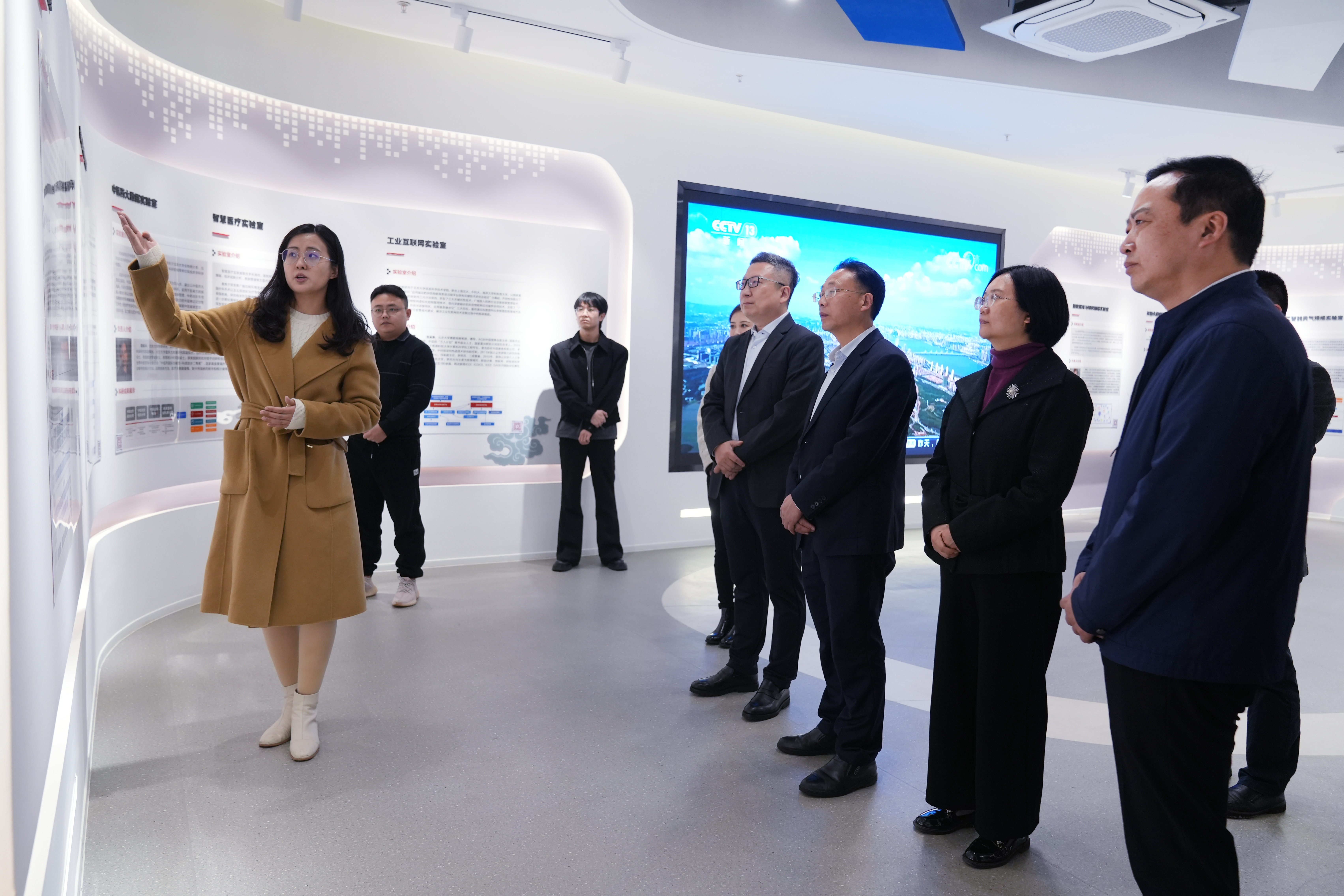高明书记一行在北大重庆大数据研究院副院长王涛陪同下参观了研究院展厅,听取了数值计算实验室、中医药大数据实验室、数据库与知识图谱实验室、工业互联网实验室情况介绍,详细了解了基础软件研发创新和工业软件应用落地等方面取得的进展。